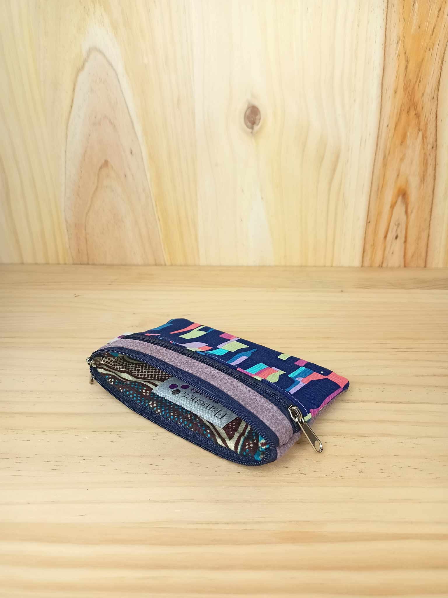 Dos cremalleras. En el compartimento pequeño caben hasta 20 tarjetas.