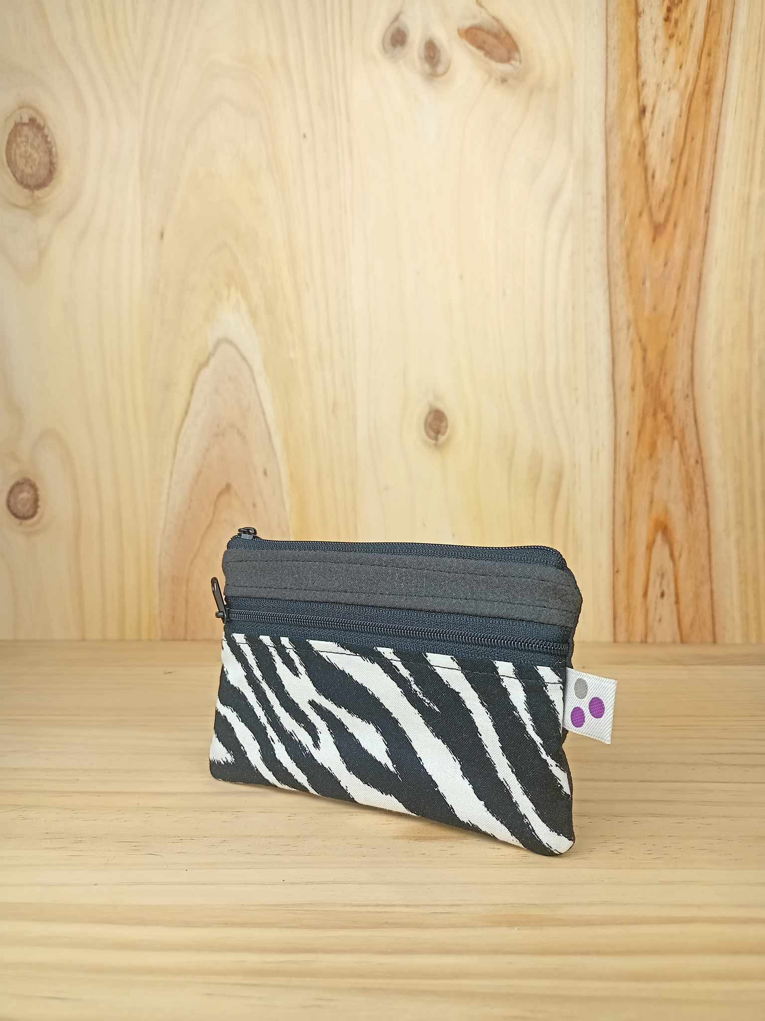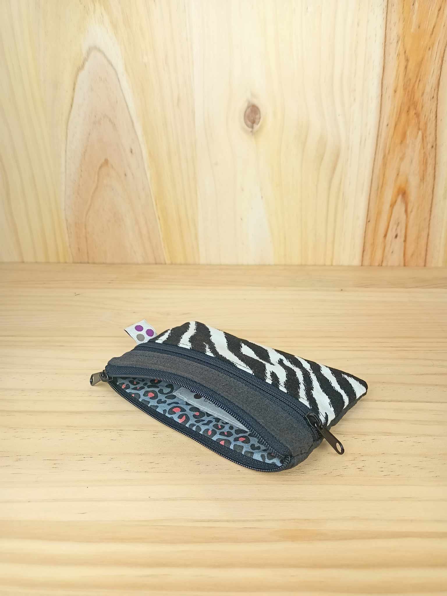 Dos cremalleras. En el compartimento pequeño caben hasta 20 tarjetas.