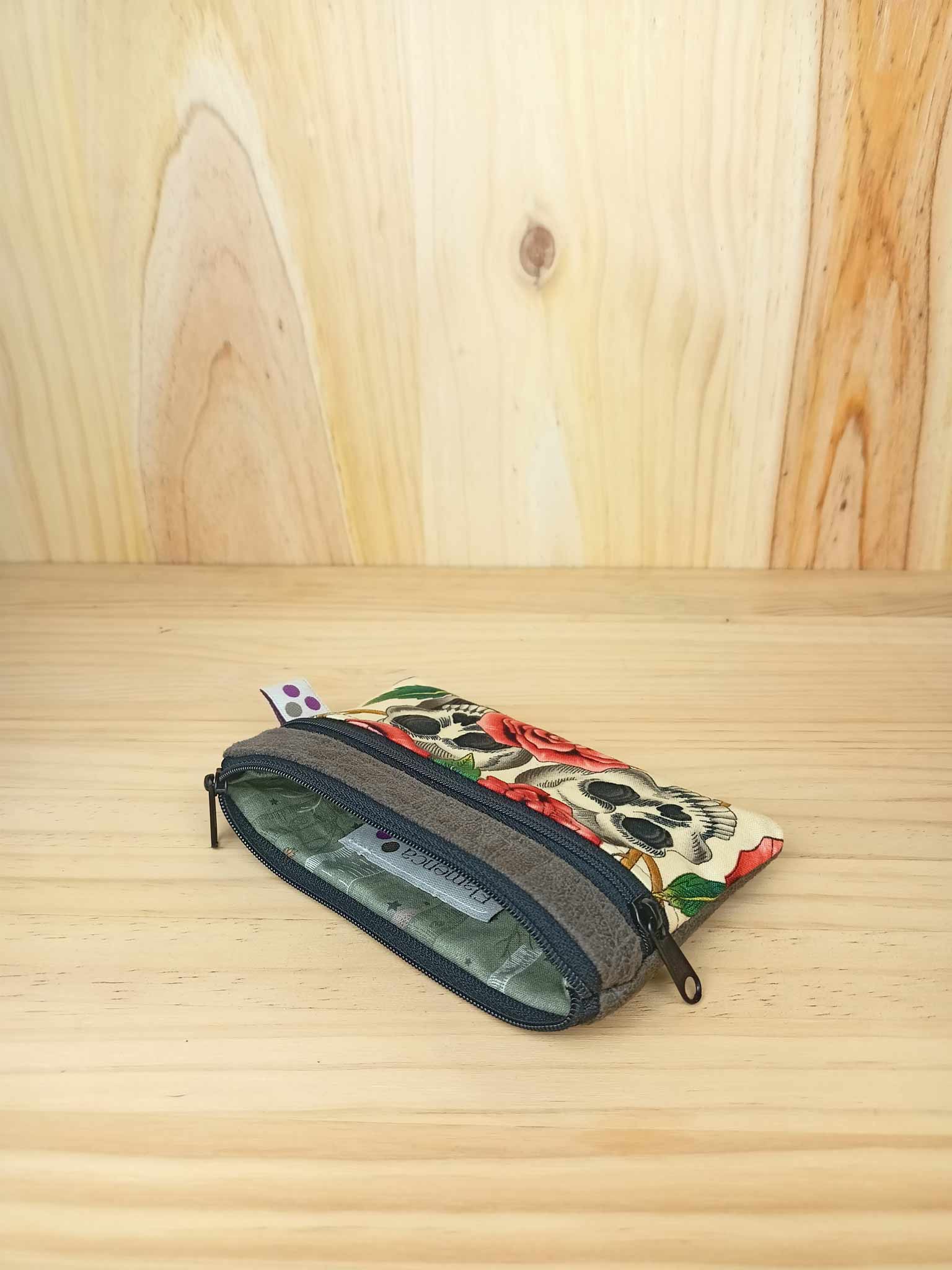 Dos cremalleras. En el compartimento pequeño caben hasta 20 tarjetas.