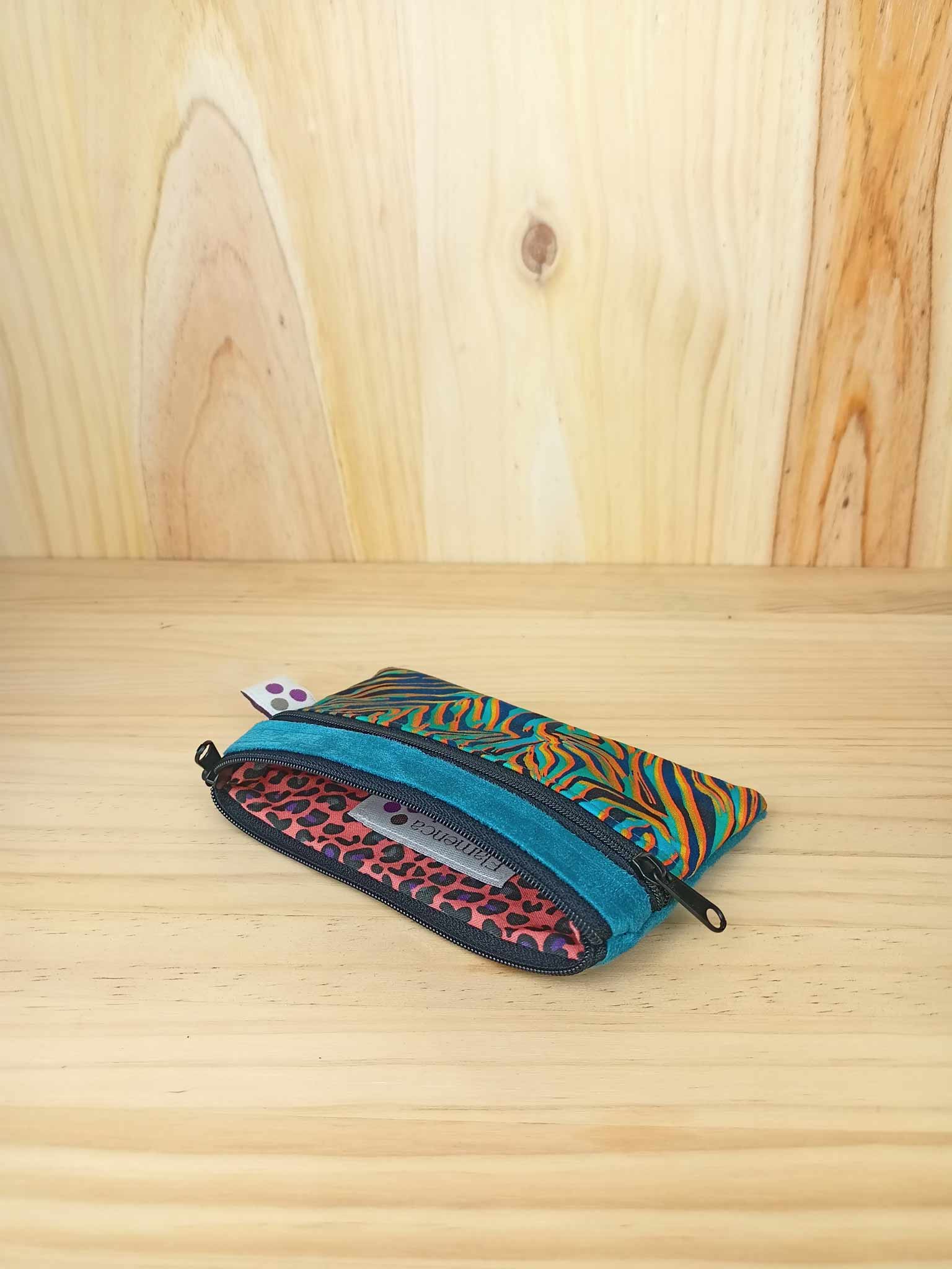 Dos cremalleras. En el compartimento pequeño caben hasta 20 tarjetas.